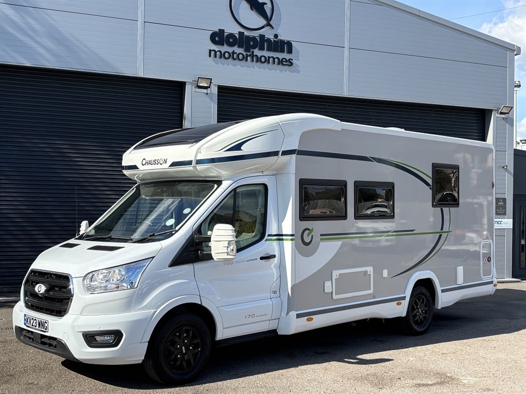 2023 Chausson 788 Titanium Ultimate Used Coachbuilt motorhome for sale in Dolphin Dorset UK. This model is 4 berth with 4 seatbelts. 2.0 TDCI engine with Automatic transmission.