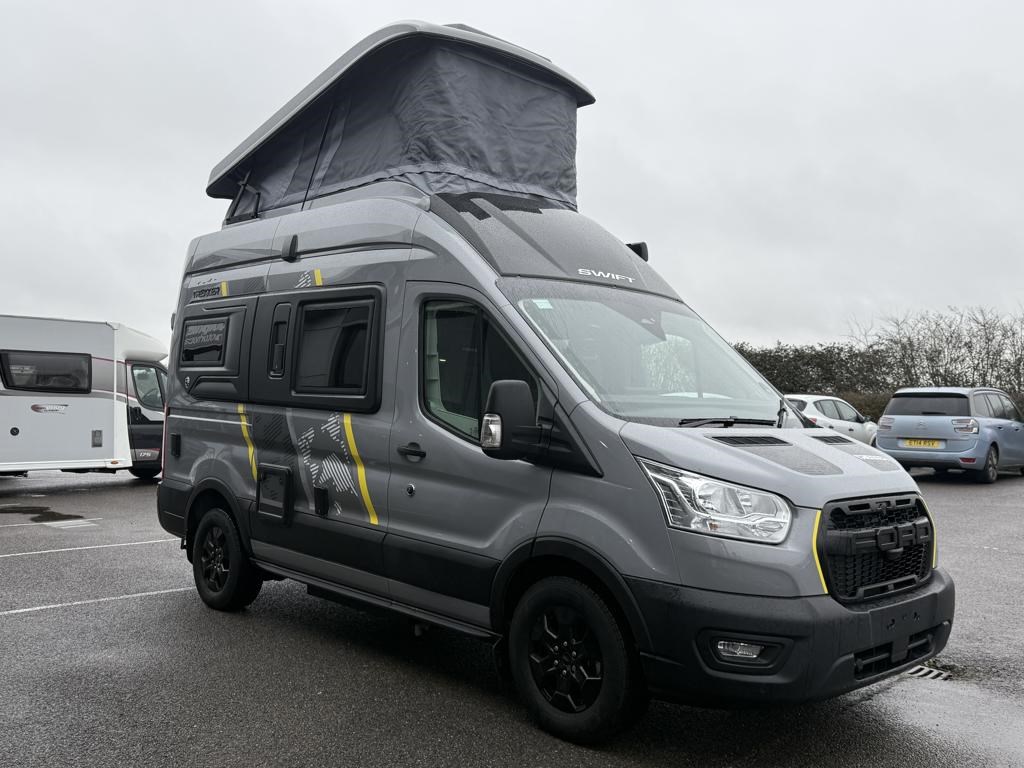 2026 Swift Trekker S New Elevating Roof motorhome for sale in Dolphin Sussex UK. This model is 4 berth with 4 seatbelts. 2.0 CDTI engine with Automatic transmission.