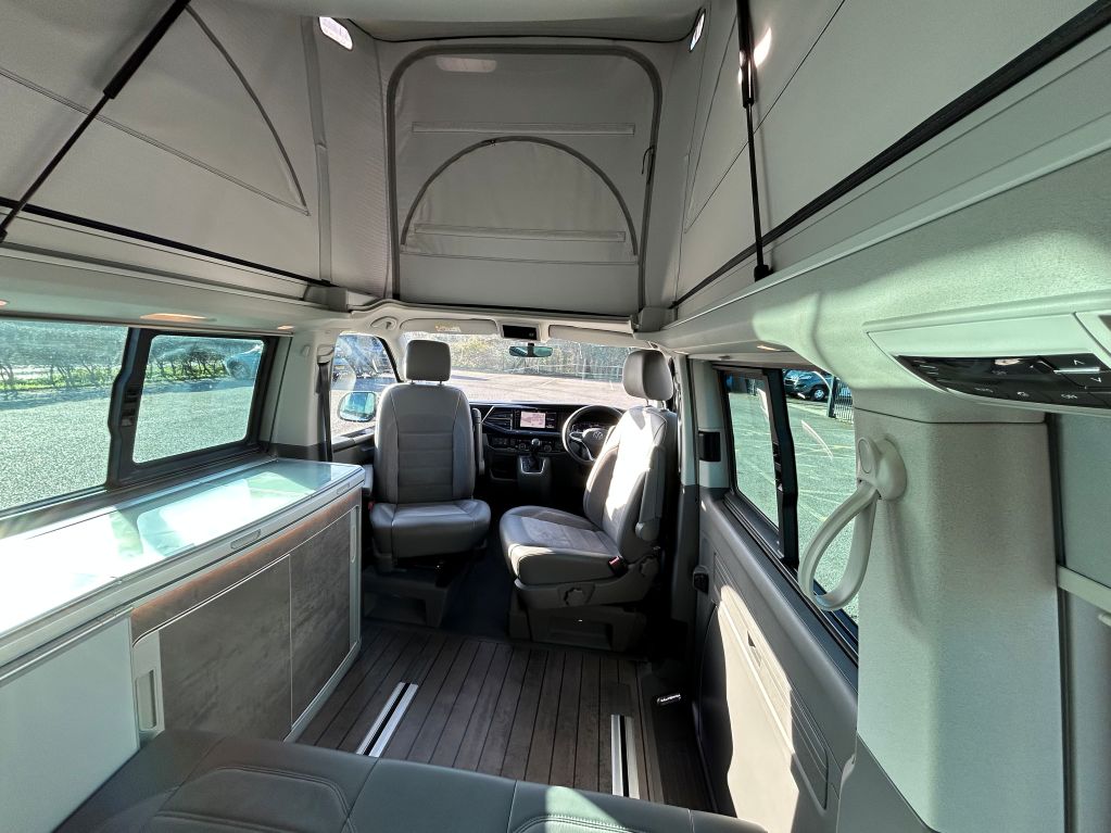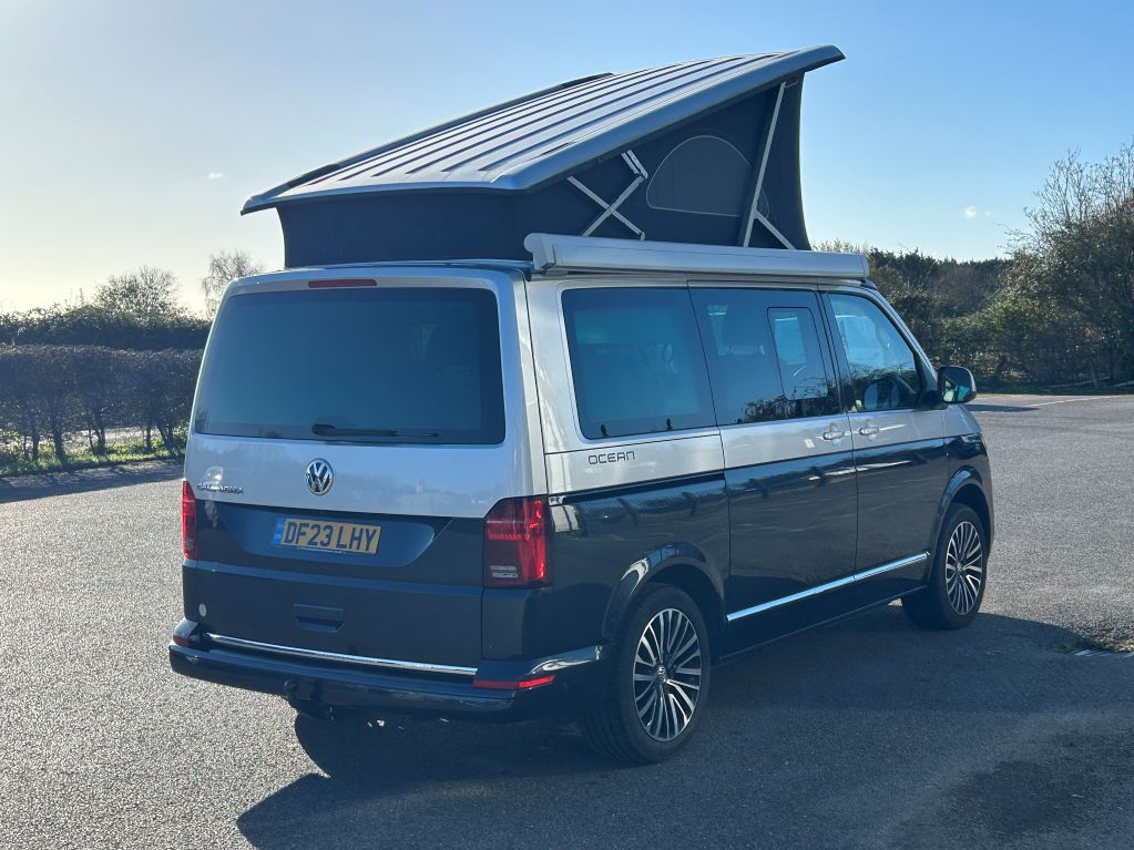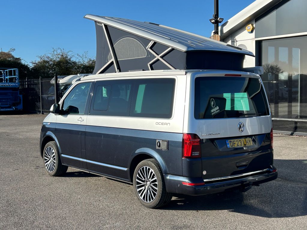 2023 Volkswagen California Ocean Used Elevating Roof motorhome for sale in Dolphin Sussex UK. This model is 4 berth with 4 seatbelts. 2.0 BI-TDI engine with Automatic transmission.