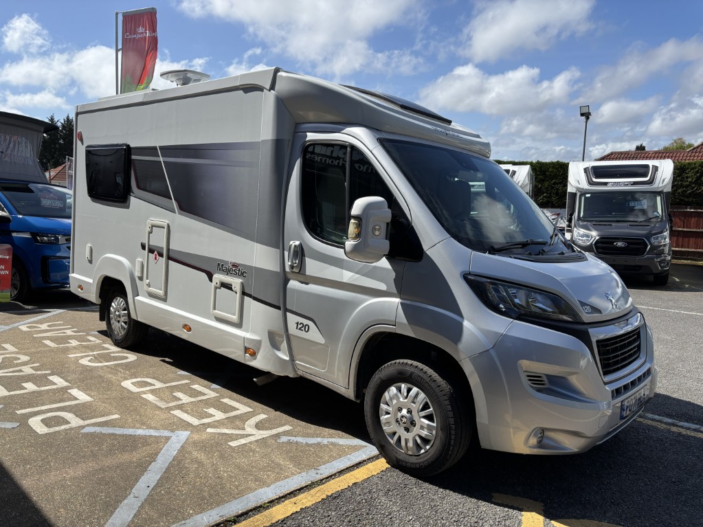 2021 Elddis Majestic 120 Used Coachbuilt motorhome for sale in Dolphin Hampshire UK. This model is 2 berth with 2 seatbelts. 2.2 HDI engine with Manual transmission.