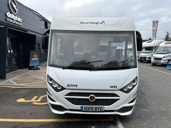 2019 Sunlight I69S Active Used A-Class motorhome for sale in Dolphin Hampshire UK. This model is 4 berth with 4 seatbelts. 2.3 JTD engine with Automatic transmission.