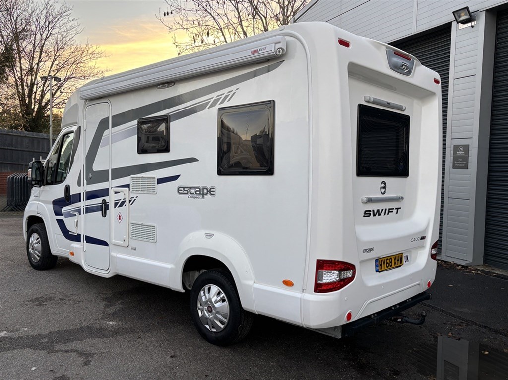 2018 Swift Escape C402 Used Coachbuilt motorhome for sale in Dolphin Dorset UK. This model is 3 berth with 4 seatbelts. 2.3 JTD engine with Manual transmission.
