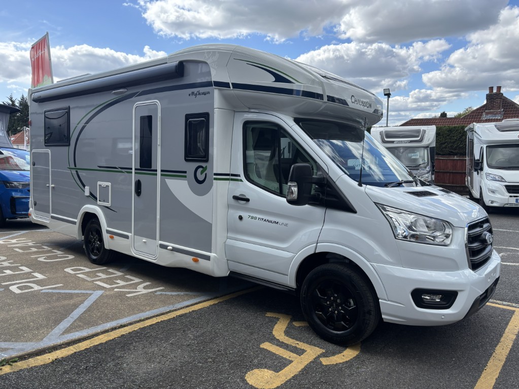 2026 Chausson 798 Titanium Line New Coachbuilt motorhome for sale in Dolphin Hampshire UK. This model is 4 berth with 4 seatbelts. 2.0 CDTI engine with Automatic transmission.