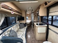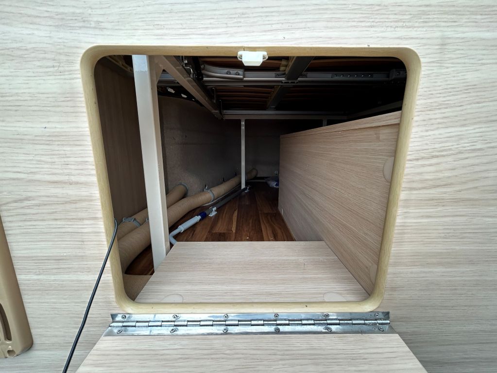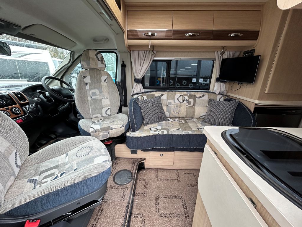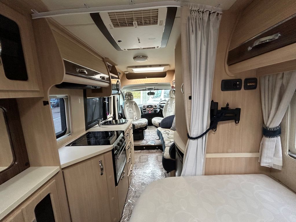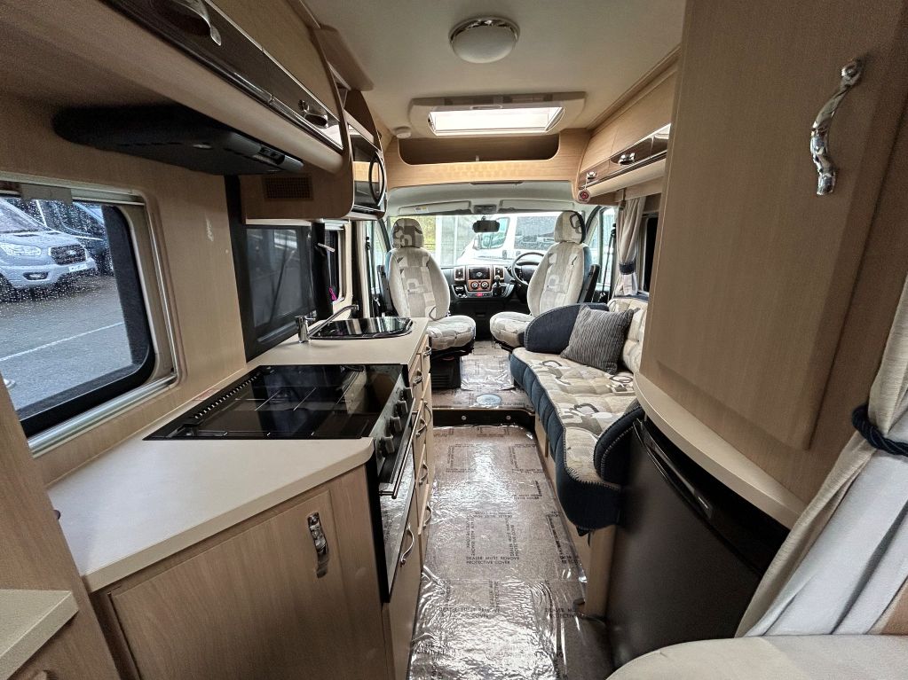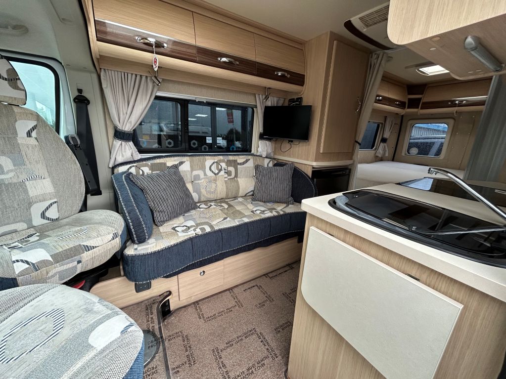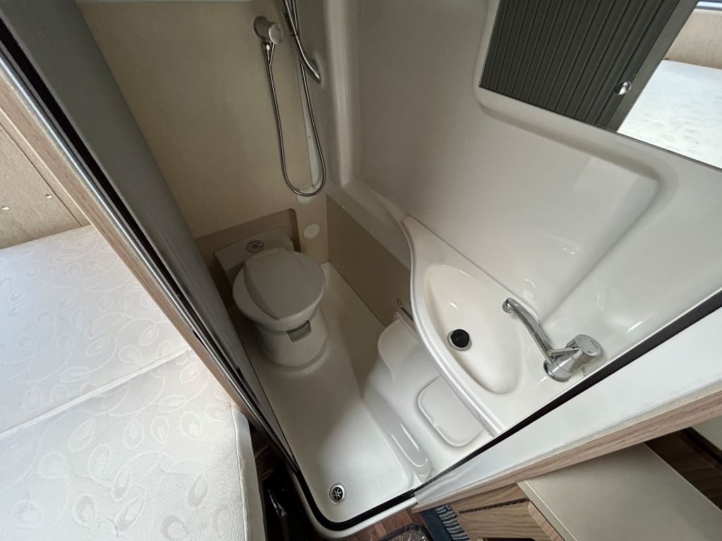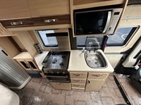 Inside, the bright and welcoming lounge converts effortlessly into a comfortable double bed, while clever storage solutions make excellent use of space throughout. The fully equipped end kitchen features quality fittings, ample worktop space, and everything you need to prepare meals on the road. A fully enclosed washroom with toilet and shower adds genuine independence for touring.