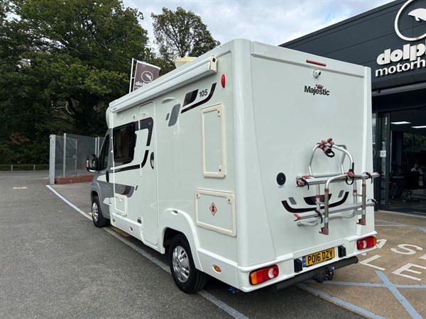 2016 Elddis Majestic 105 Used Coachbuilt motorhome for sale in Dolphin Hampshire UK. This model is 2 berth with 2 seatbelts. 2.2 HDI engine with Manual transmission.