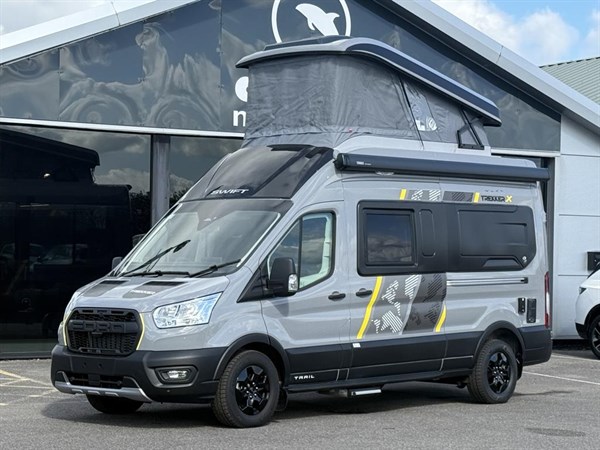 2026 Swift Trekker X New Elevating Roof motorhome for sale in Dolphin Sussex UK. This model is 4 berth with 4 seatbelts. 2.0 CDTI engine with Automatic transmission.